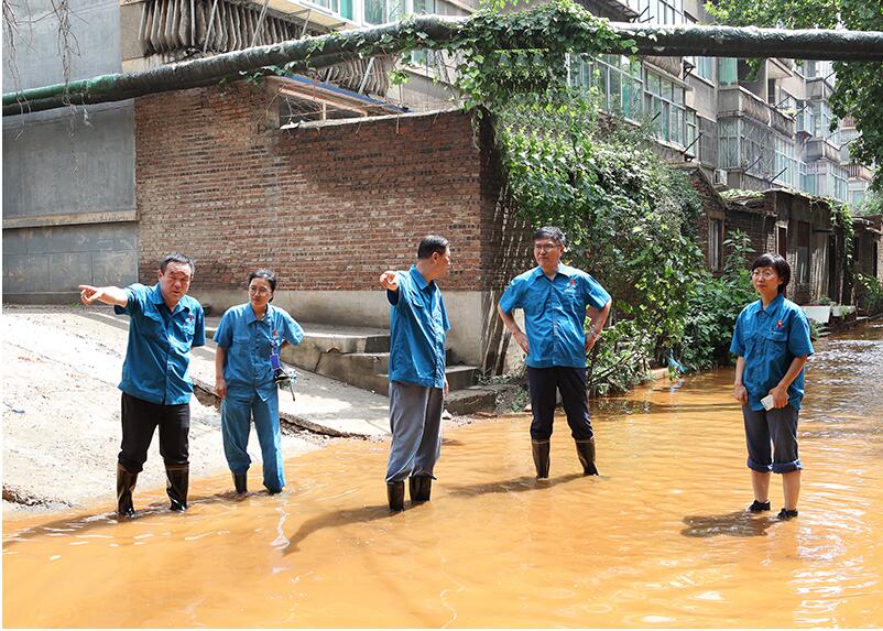 On the morning of August 14, Zhou Zhongjie, deputy secretary and general manager of Fengfan Company, came to the Torch Energy Community to check the disaster situation in the community and direct the rescue and relief work. The leaders of the Torch Energy Company Li Yuzhu and Chen Weiyang accompanied to check the flood situation.
